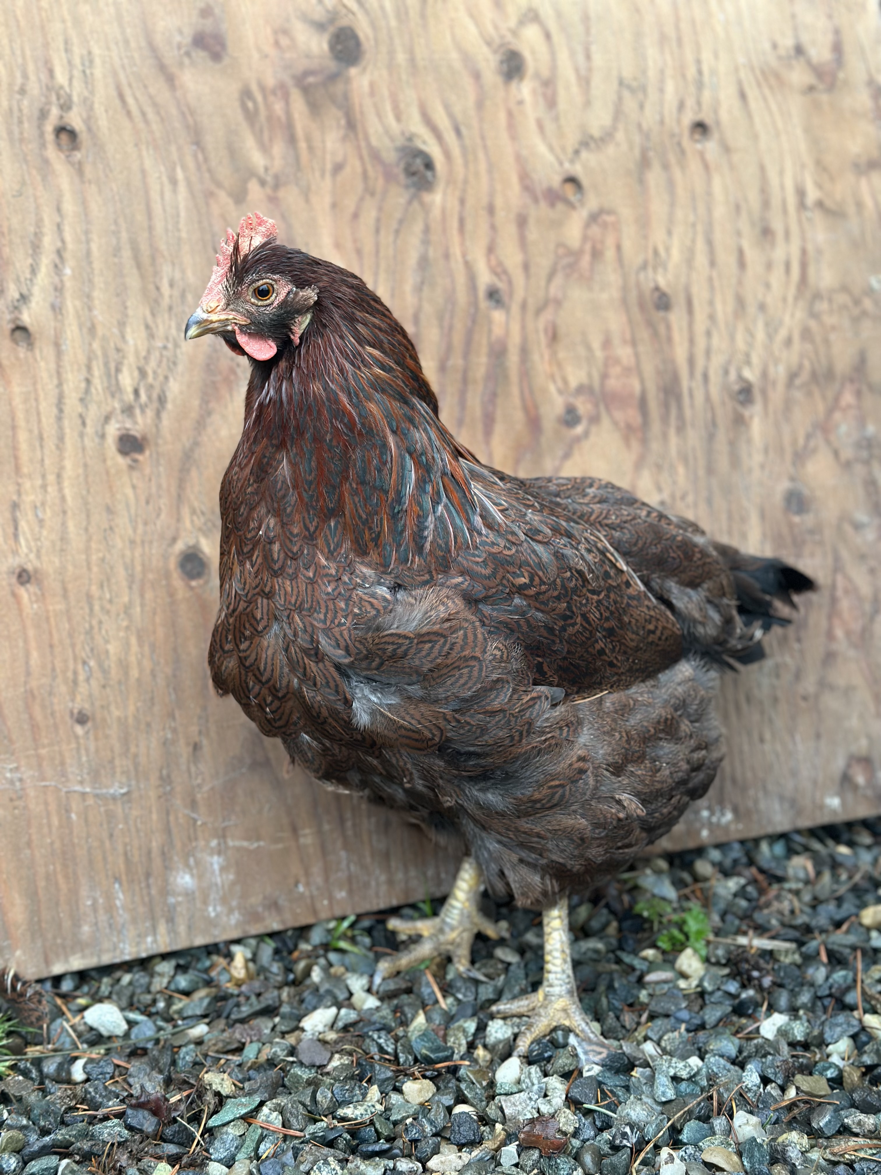 "Penny" came to us when she needed a new home and her owner was worried about someone taking her since she wasn't laying eggs anymore. She is very sweet and is settling into our flock quickly!